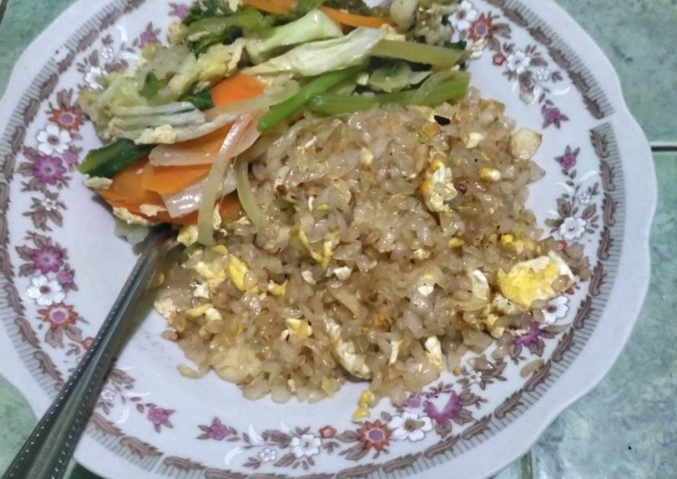 karna lagi diet bingung mau makan apa malam2 gini jadi lah nasi goreng rendak kalori ini