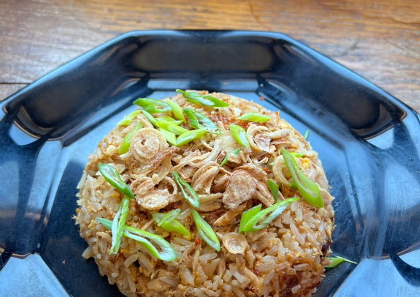 - Hidangkan bersama dengan daun bawang, bawang goreng, harusnya ada timun/bonteng ini biar seger tapi saya mager yaudahlah begini aja.