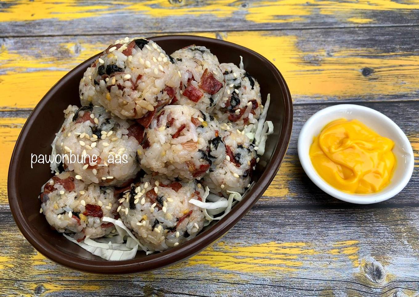 - Sajikan nasi kepal dengan saus cocolan sesuai selera.